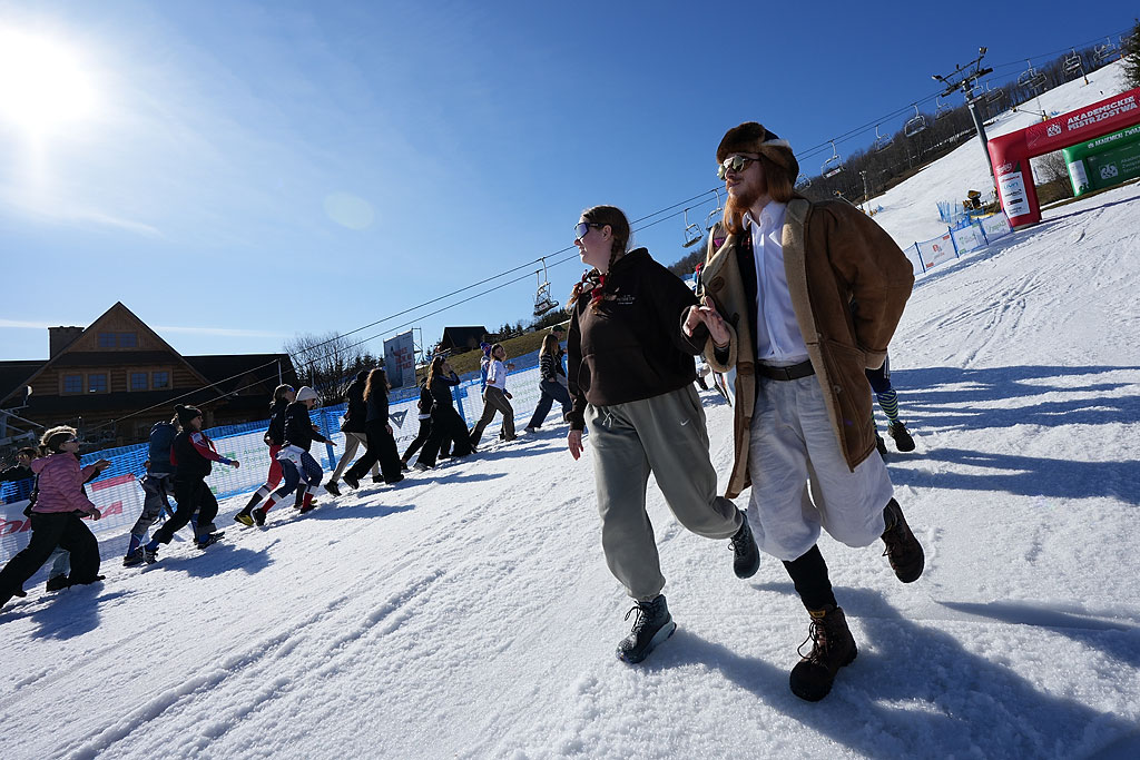 Podobnie jak przed rokiem finał Akademickich Mistrzostw Polski odbywał się przy fantastycznej pogodzie. Marcowe słońce na Harendzie to znak rozpoznawczy studenckiego narciarskiego święta, ale nie zawsze tak bywało. Przed dwoma laty o medale walczono po nocnym opadzie śniegu, w gęstej mgle i przenikliwym zimnie. Tym razem aura zachęcała do kibicowania, więc zmaganiom najlepszych alpejczyków przyglądał się tłum na mecie. A było się czym delektować.