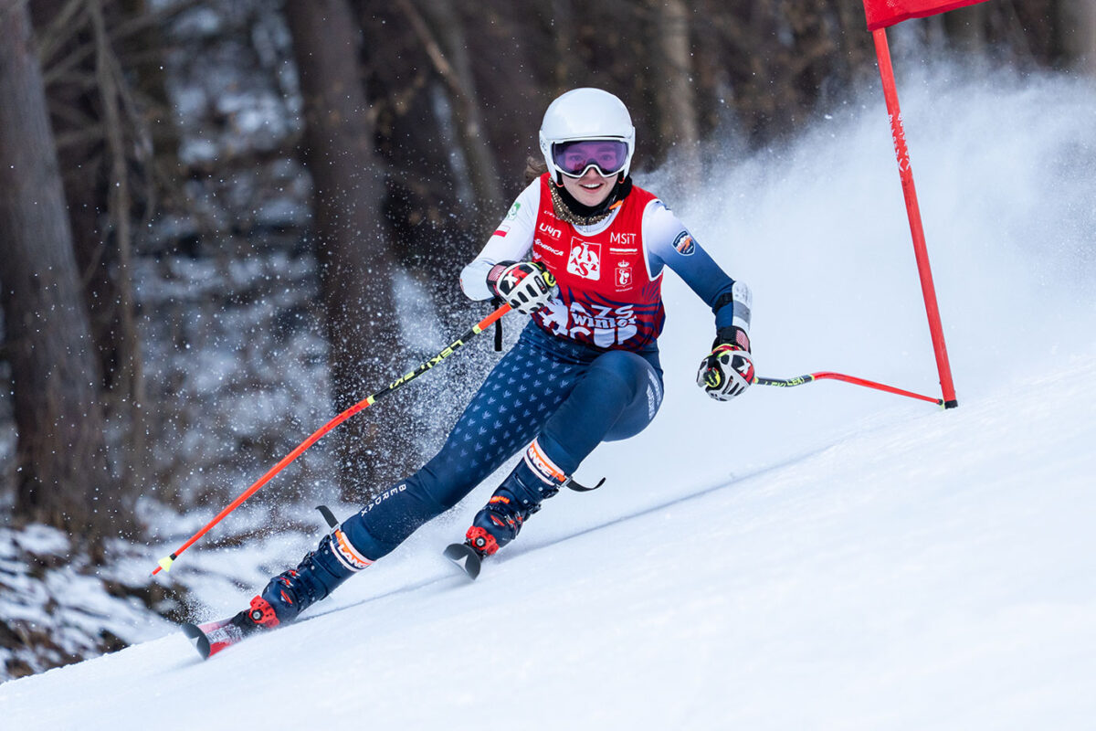 I rzeczywiście nie szło mu tu tak dobrze jak przez resztę sezonu. Ale o tym za chwilę… Zacznijmy od rywalizacji pań w gigancie. Na starcie zabrakło Magdaleny Bańdo (UŚ Katowice) – jedynej zawodniczki, która mogła rzucić jeszcze rękawicę liderce klasyfikacji generalnej. W obliczu jej absencji Maja Woźniczka nie musiała przesadnie ryzykować i cieszyła się z drugiego miejsca jak ze zwycięstwa. Wszystko dlatego, że srebrny medal zagwarantował dominatorce tegorocznej edycji Akademickiego Pucharu Polski Kryształową Kulę. Pierwszy złoty medal w tym sezonie (i pierwszy od grudnia 2024 w tej konkurencji) zdobyła Maja Chyla. Było to zdarzenie tak wyczekiwane i tak potrzebne zawodniczce z Krakowa, a przecież kiedyś oglądaliśmy to co dwa tygodnie. Na trzecie miejsce zjechała Patrycja Florek (AWF Katowice) i ten wynik spowodował również ogromną radość. Patrycji nie udało się jeszcze zdobyć medalu w gigancie w ramach AZS Winter Cup, a czwartych miejsc uzbierała chyba tyle co Wendy Holdener drugich w Pucharze Świata. Wszystkie zawodniczki na podium były wręcz przeszczęśliwe.